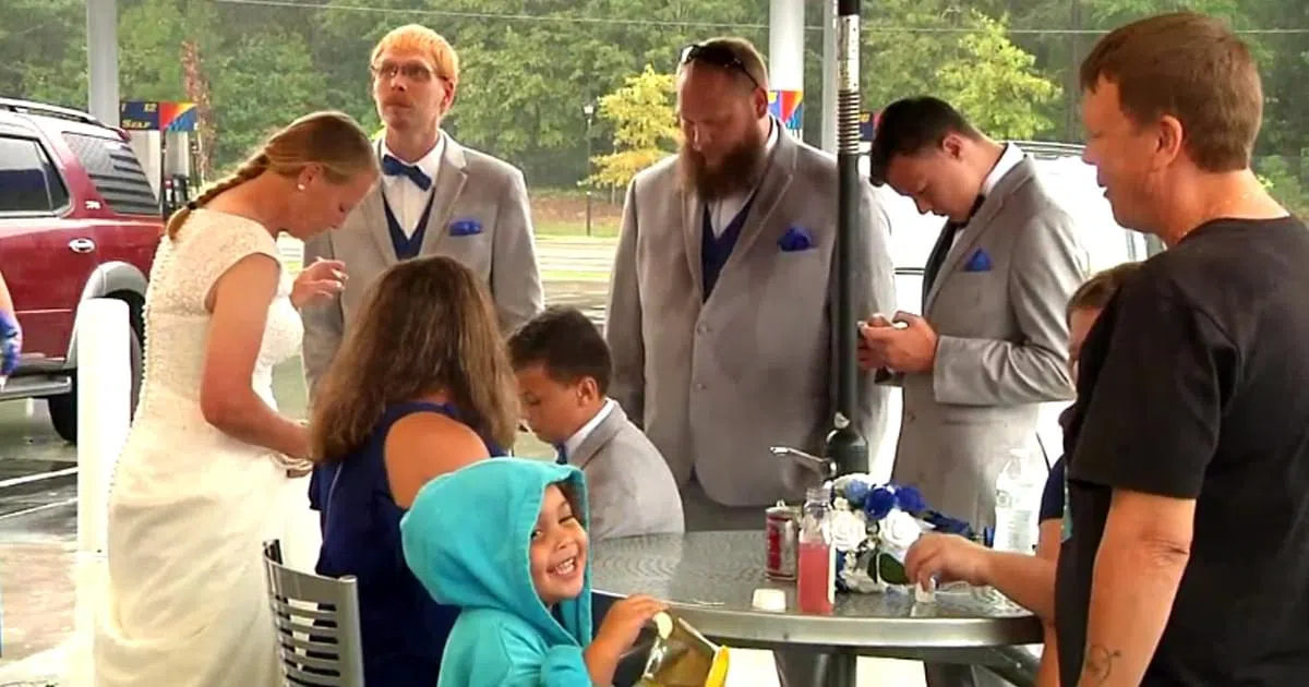 They were originally planning to get married in a park, but the park closed due to the hurricane. They decided to get married at a Sonoco gas station instead.