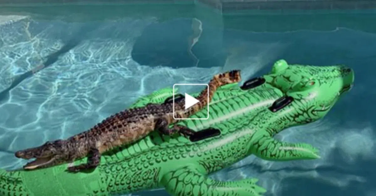 In an Airbnb in Miami, a Georgia family found something quite unusual in the house’s pool, an alligator relaxing on an inflatable alligator!