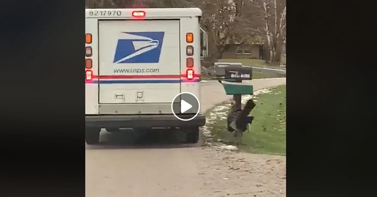 In Wisconsin, this turkey must be waiting for something special to come in the mail because it would not stop running after this mail truck!